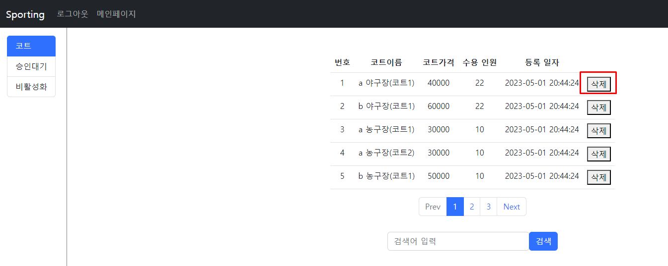 삭제 된 코트는 status 가 '비활성' 을 save (update) 한다.