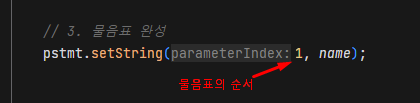 pstmt.setString(1, name);// (물음표의 순서, 이름)