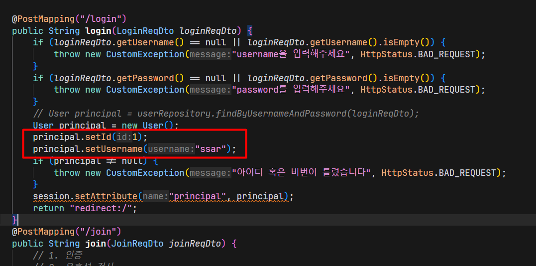 // User principal = userRepository.findByUsernameAndPassword(loginReqDto);