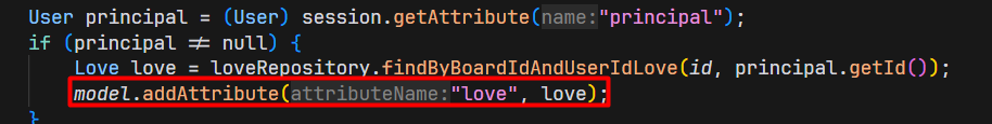 love 객체를 생성해서 board id 와 principal id 를 주입.