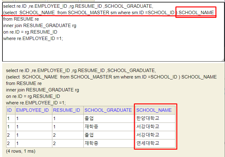 school_name이 나오는 부분을 서브쿼리로 기존 쿼리문에 추가한다.