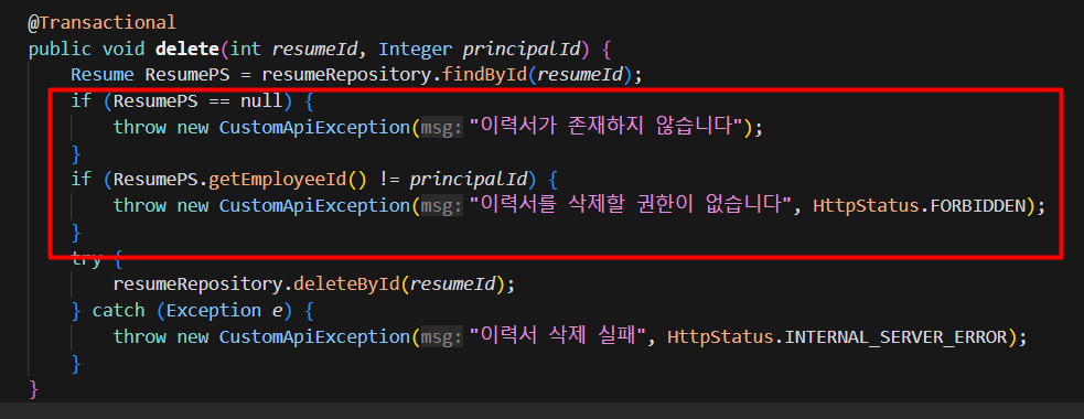 throw new CustomApiException("이력서를 삭제할 권한이 없습니다", HttpStatus.FORBIDDEN);